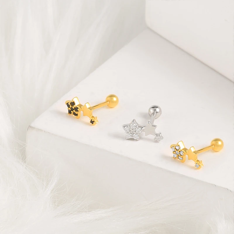 Boucles d’Oreilles CANNER en Argent 925 – Lot de 2 avec Zircon Blanc & Noir ✨