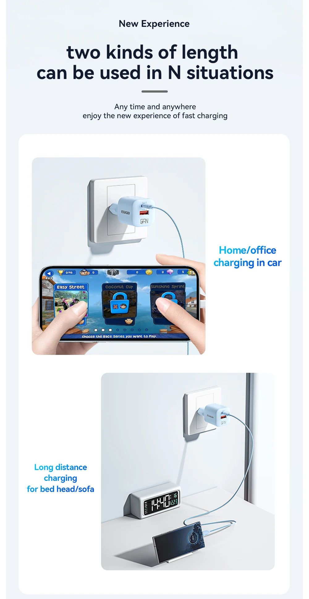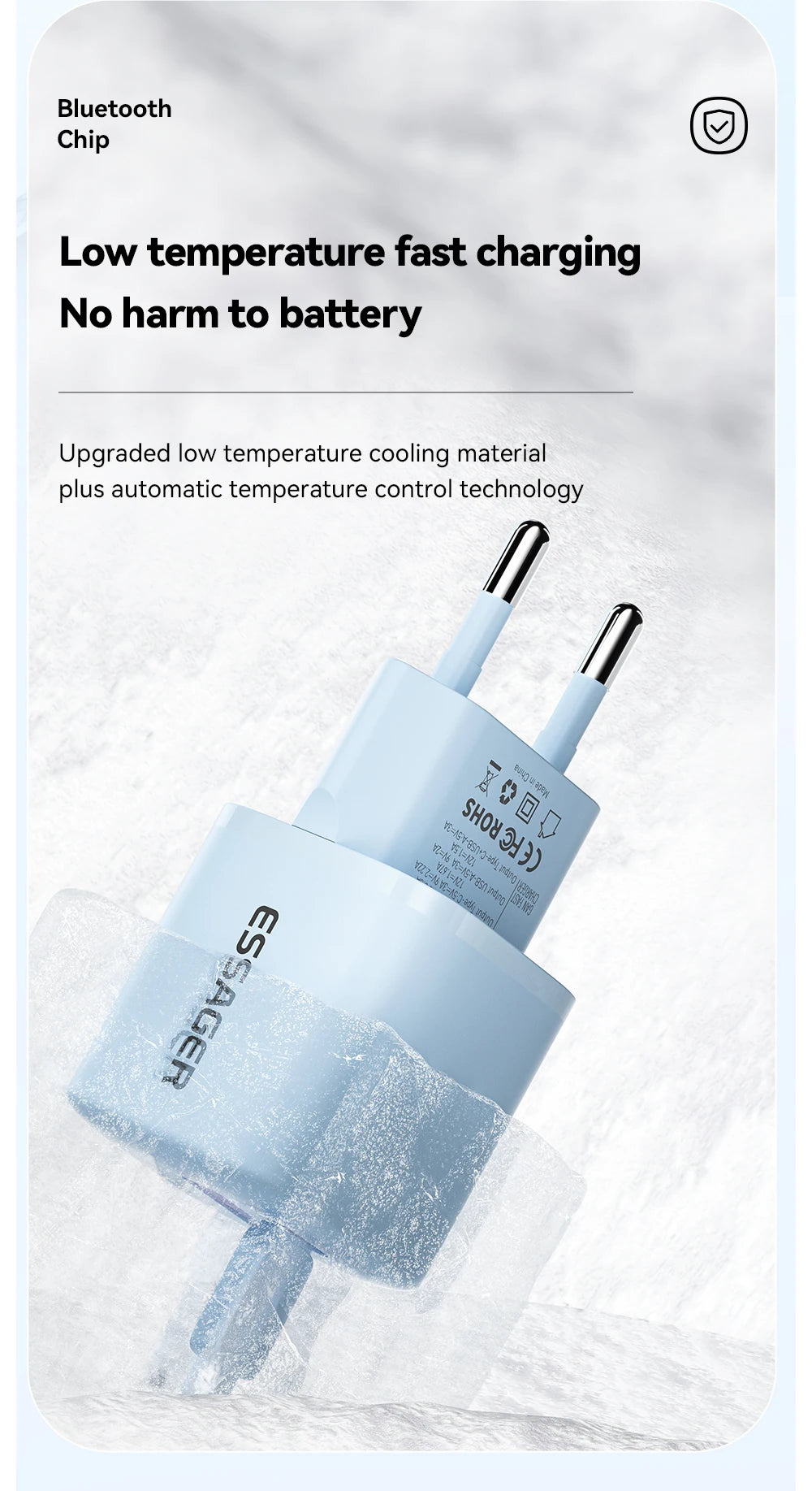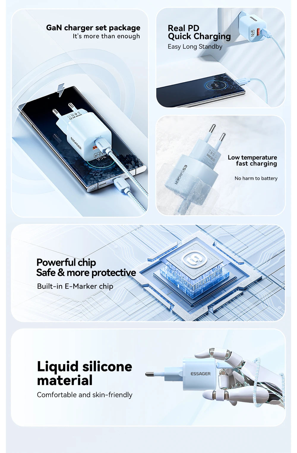 Chargeur USB-C Essager 20W GaN – PD & QC 3.0, Double Port A+C, Charge Rapide pour iPhone et iPad